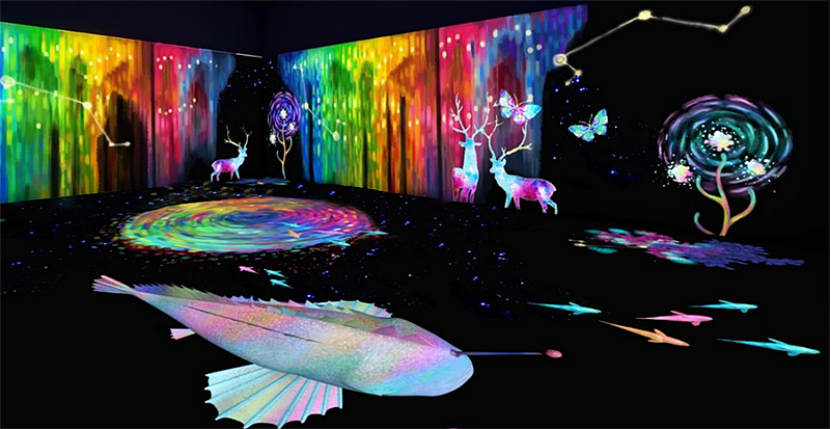 沉浸式投影是一种基本全息立体投影系统拓展出来的围绕投影系统,一般由4个投影面构成立方体结构,让观众获得一种身临其境的三维立体视听影像和交互感受。这种沉浸的感觉是普通投影不能实现的。