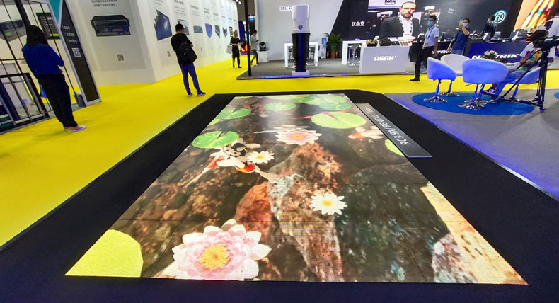 LED地砖屏是一款新颖的数字化地面显示设备,它的响应以全新数字技术为核心,采用微电脑全数字化处理,先进的电路保护设备,采用视频同步控制方式,实现了高分辨率的柔和色彩显示效果,完成了舞台虚拟造景与表演互动的完美结合;它采用了高强度的钢化玻璃面罩,坚固的压铸铝合金的支撑装置。