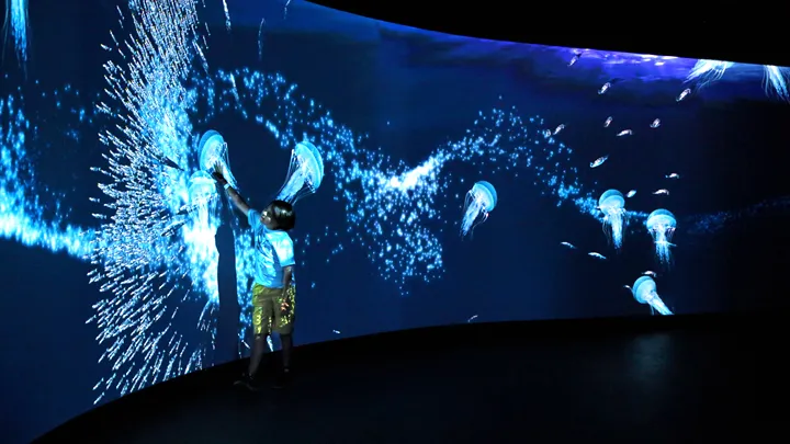 人影粒子互动系统通过流动的粒子与人影体感互动形成全新的视觉体验。每一颗火焰粒子随你而动,可像破茧的蝴蝶翩翩起舞,也可像涅槃的凤凰,浴火重生。每一颗火焰粒子时时变色,可以凹出更多造型。所动即所得的体验效果,让看客参与感更强,是商场展会吸引人流的利器。同时也是抖音小视频,朋友圈社交平台很受欢迎的体感互动项目,更容易激发人们的体验欲和转发欲,自带引流技能,可作为企业推广和宣传的媒介。
